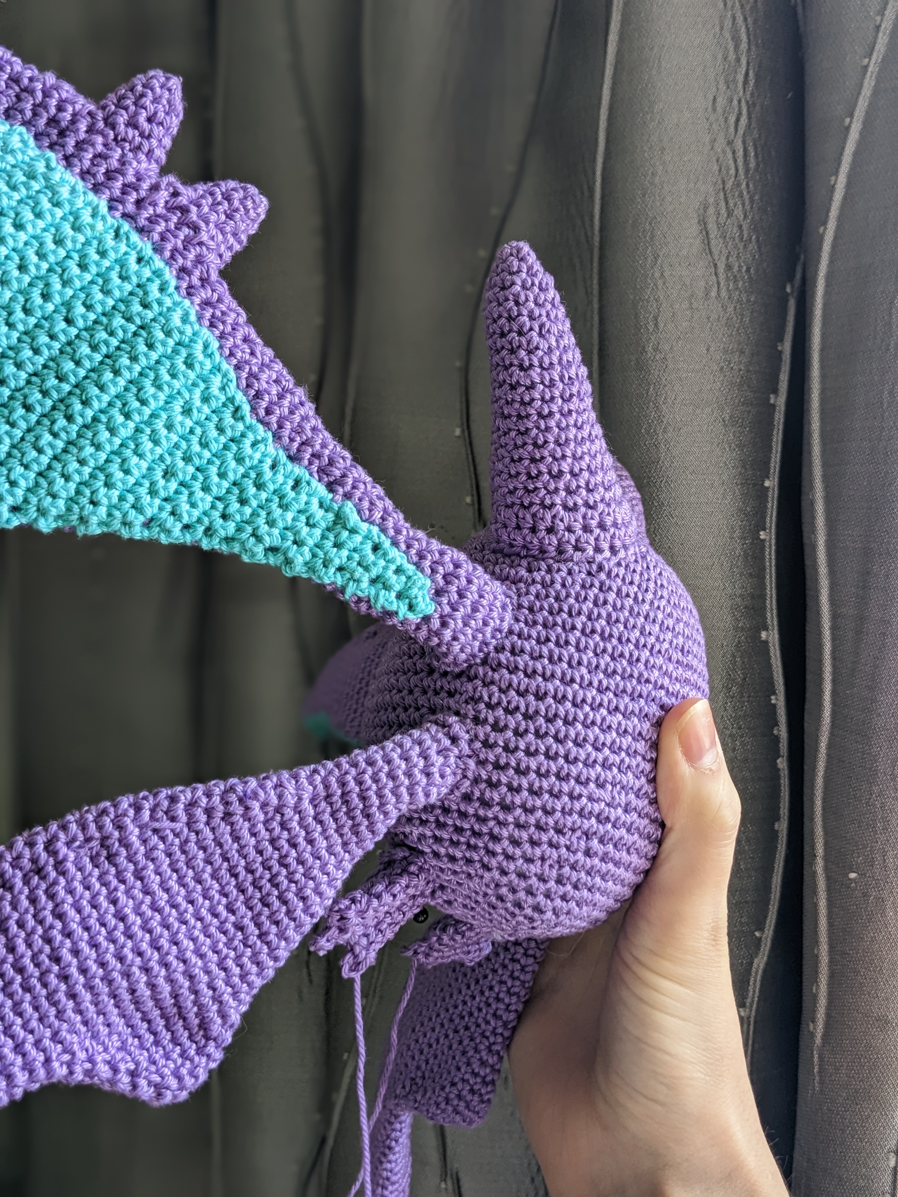 Repeat above with the second set of wings. From here you will need to fold the wire in so you can continue to crochet around them. Stuff very firmly as you go.